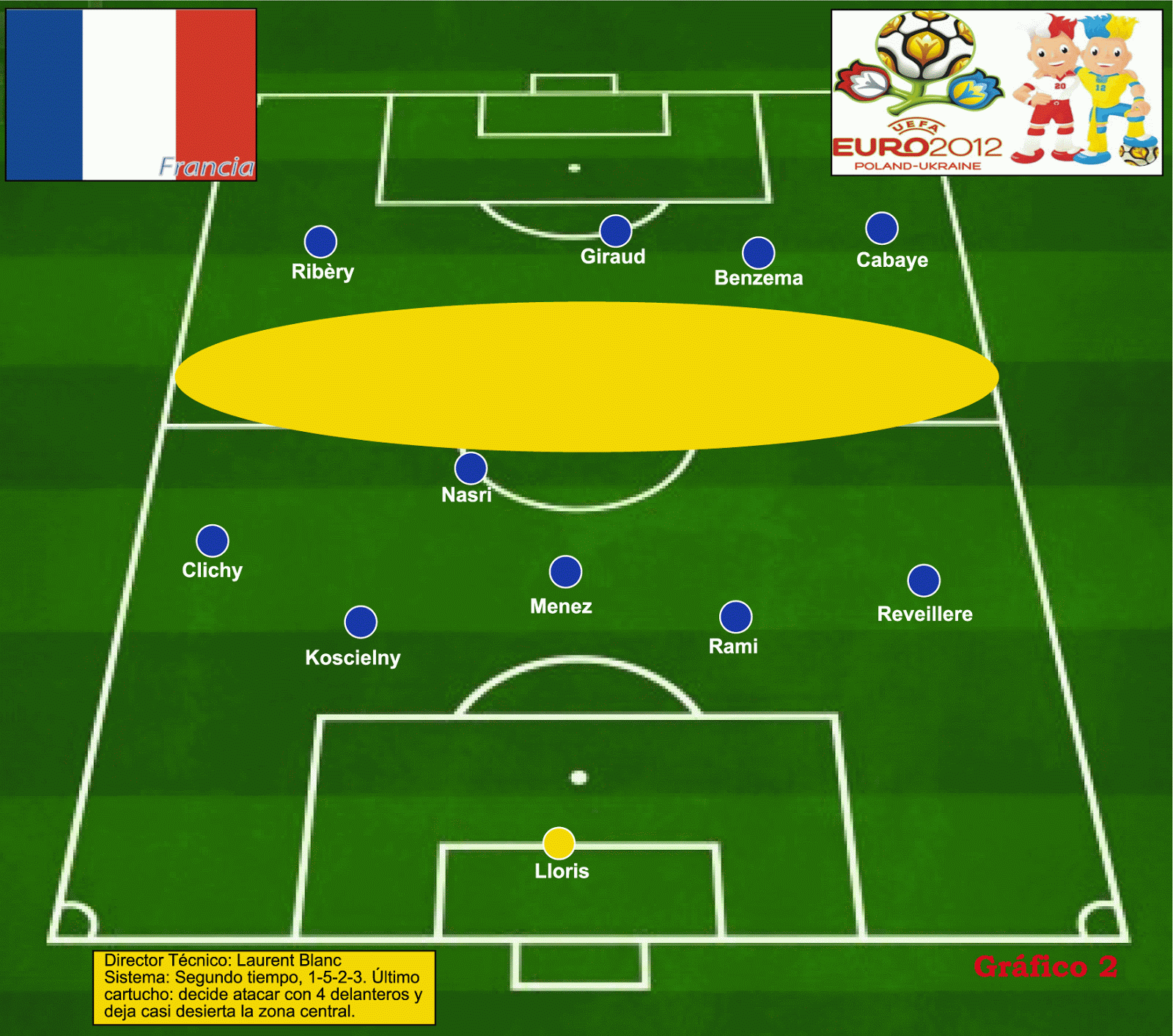 Debouchy, Cabaye, Malouda, Ribèry y un solo delantero, Benzema.